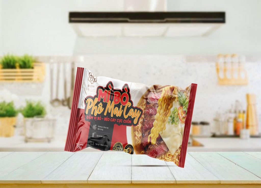MÌ TÔM BÒ PHÔ MAI CAY DUNA – BÉO NGẬY, CAY NỒNG, CỰC ĐÃ